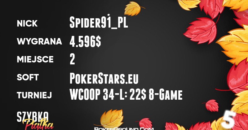 Wczorajszej nocy dołożył nowy do kolekcji – już piąty – a stało się to w evencie WCOOP 34-H: 2.100$ 8-Game. Dzięki tej wygranej nasz gracz zainkasował 42.536$. Gratulujemy!
