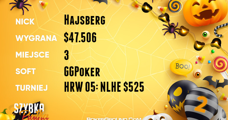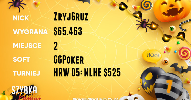 ZryjGruz melduje się dzisiaj na czele zestawienia i zakłada żółtą koszulkę lidera. Zanotował on prawie doskonały występ w turnieju HRW 05: NLHE $525. Prawie, gdyż ostatecznie zakończył zmagania na drugi miejscu, a w efekcie zainkasował $65.463. Warto wspomnieć, że na trzecim miejscu w tym turnieju był Hajsberg.