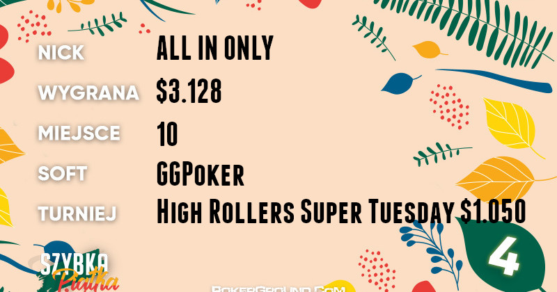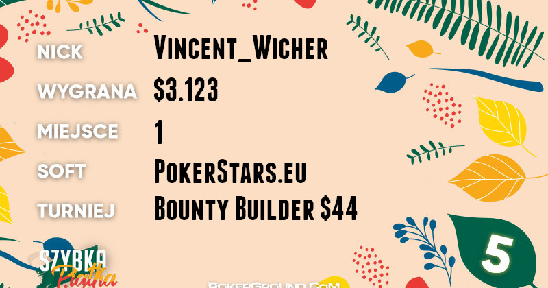 Rodzynkiem w grupie, który może pochwalić się zwycięstwem jest Vincent_Wicher. Nie dał on żadnych szans rywalom w turnieju Bounty Builder $44, dzięki czemu zarobił $3.123. Pozwoliło to zahaczyć się na piątym miejscu w rankingu.