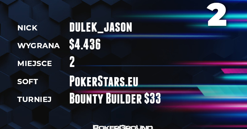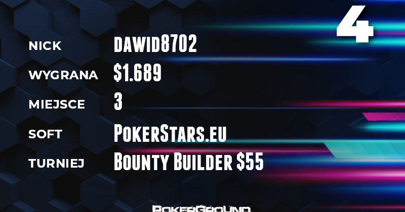 Najlepiej spisał się nowbar, który zameldował się na finałowym stole rozgrywki $530 Bounty Builder HR. Polak zakończył swój udział tuż przed podium, na miejscu czwartym. Do kasy, udał się po wypłatę wynoszącą $6.363.