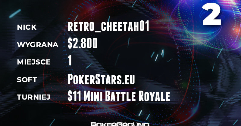 Za plecami lidera uplasował się retro_cheetah01. Ten z kolei przeszedł błyskawicznie przez poranną rozgrywkę $11 Mini Battle Royale i stanął na najwyższym stopniu podium. Do kasy udał się po wypłatę wynoszącą $2.800.