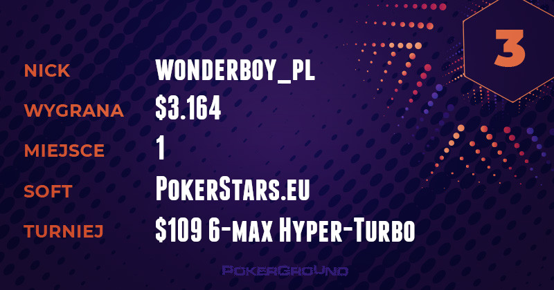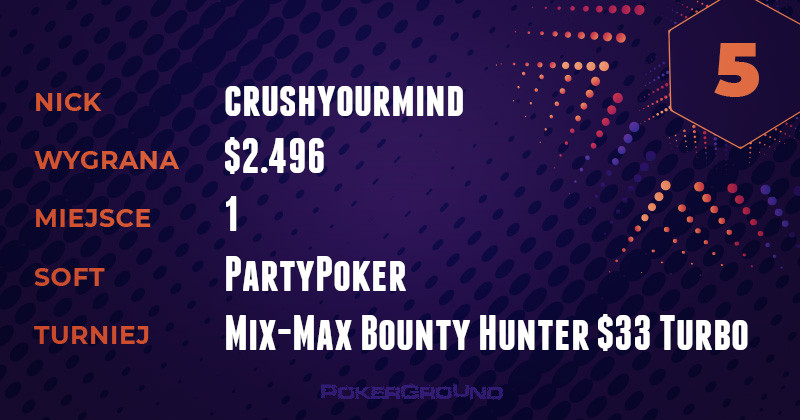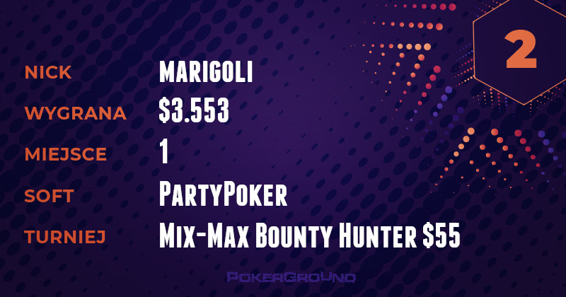Jeżeli Polacy punktowali wczoraj na PartyPoker, to były to tylko zwycięstwa. Najwyższym może pochwalić się wicelider tabeli – marigoli. Nie miał on sobie równych w rozgrywce Mix-Max Bounty Hunter o wpisowym $55, za co otrzymał $3.553.