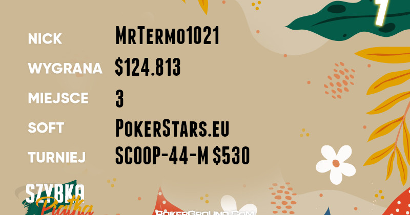 Najważniejsze rozstrzygnięcie wczorajszego dnia zapadło w evencie SCOOP-44-M $530 Sunday Million Edition. Tam na najniższym stopniu podium stanął MrTermo1021, który za swój sukces otrzymał $124.813.