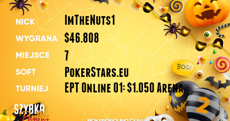 W podobnym czasie bój na finałowym stole innego eventu – EPT Online 01: $1.050 Arena Championship – toczył ImTheNuts1. Starcie najlepszej dziewiątki było ukoronowaniem czterech dni zmagań. Polak zakończył udział na siódmym miejscu, w związku z czym otrzymał wypłatę w kwocie $46.808.