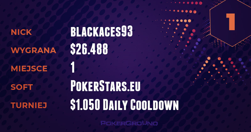 Poproszę werble i uwaga zdradzam nick gracza – blackaces93. Nie od dziś wiadomo, że to jeden z lepszych grinderów on-line, ale sami musicie przyznać, że wygranie zarówno $1.050 Daily Cooldown i Bounty Builder High Roller $530 to wyczyn najwyższej próby. Na jego konto powędrowało łącznie ponad $50.000.
