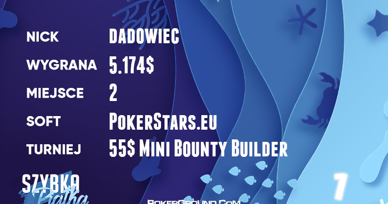 Na czele dzisiejszej Szybkiej Piątki znalazł się dobrze wszystkim znany dadowiec. Polak znalazł się w heads-upie turnieju 55$ Mini Bounty Builder. Niewiele zabrało do wygranej, ale ostatecznie trzeba było zadowolić się drugim miejscem. Na osłodę nasz gracz zainkasował 5.174$.