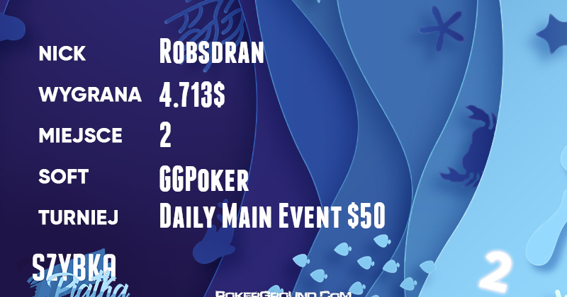 Drugie miejsce w zestawieniu należy dzisiaj do Robsdrana, który dzielnie walczył w turnieju rozgrywanym na GGPoker Network. On również poległ dopiero w heads-upie, a było to w turnieju Daily Main Event $50, i za swój bardzo udany, niemal perfekcyjny, występ zainkasował 4.713$.