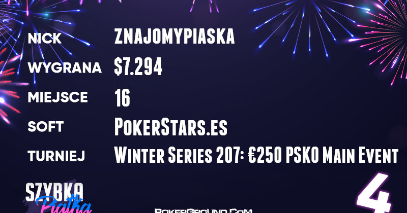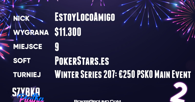 Jak wspominałem wczoraj, kilku naszych rodzynków dzielnie walczyło w Main Evencie Winter Series na platformie PokerStars.es. Ostatecznie, najdalej zawędrował EstoyLocoAmigo, a jego marsz zakończył się na dziewiątym miejscu. Z kolei szesnasty swoją wędrówkę przerwał znajomypiaska (Smart Spin MTT).