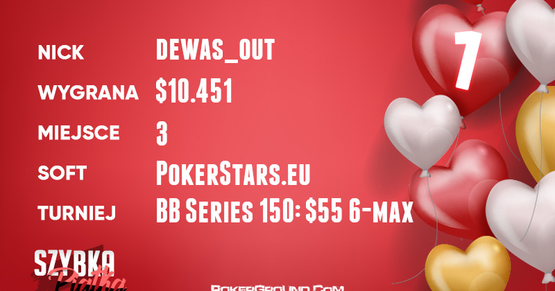 Na konta Polaków trafiło w sumie $33.329, a znaczącą cegiełkę to tego wyniku dołożył lider zestawienia – dewast_out. Stanął on na najniższym stopniu podium w evencie Bounty Builder Series 150: $55 6-max. W efekcie, na jego konto powędrowało $10.451.