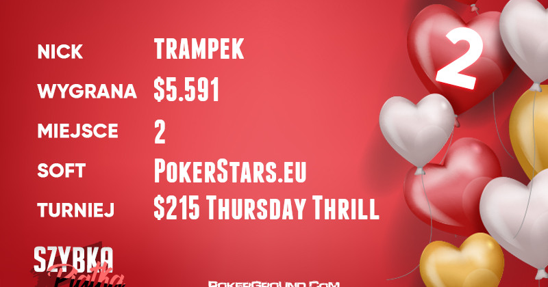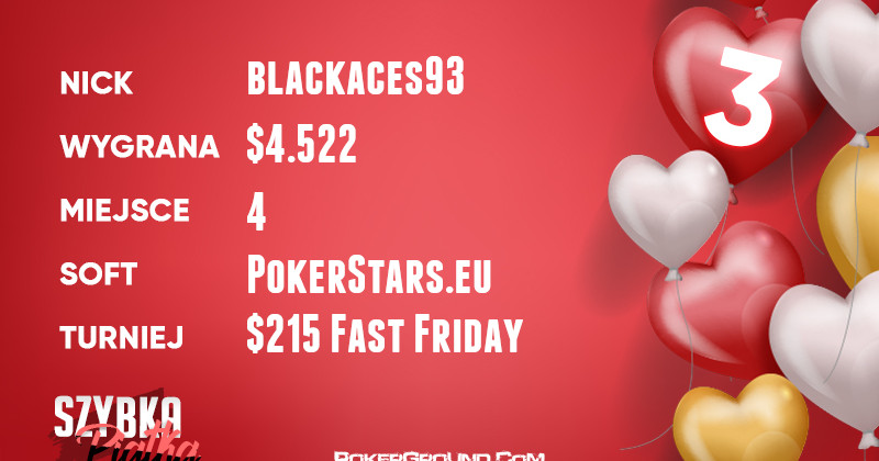 Walentynkowe święto na szczęście nie definiuje kogo lub co mamy kochać, dlatego też dzisiejsze zestawienia zawiera graczy zakochanych… w pokerze. Generalnie na rendez-vous z kartami zdecydowało się całkiem sporo graczy, a dziewięciu udało się złamać granicę tysiąca dolarów.