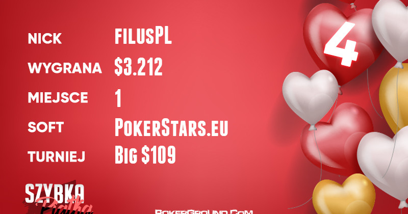 Dzień do udanych z pewnością zaliczy filusPL, który porozstawiał po kątach konkurencję w dwóch turniejach z serii Big. Zwycięstwa przyniosły mu ponad sześć tysięcy dochodu oraz dwa miejsca w dzisiejszym rankingu.