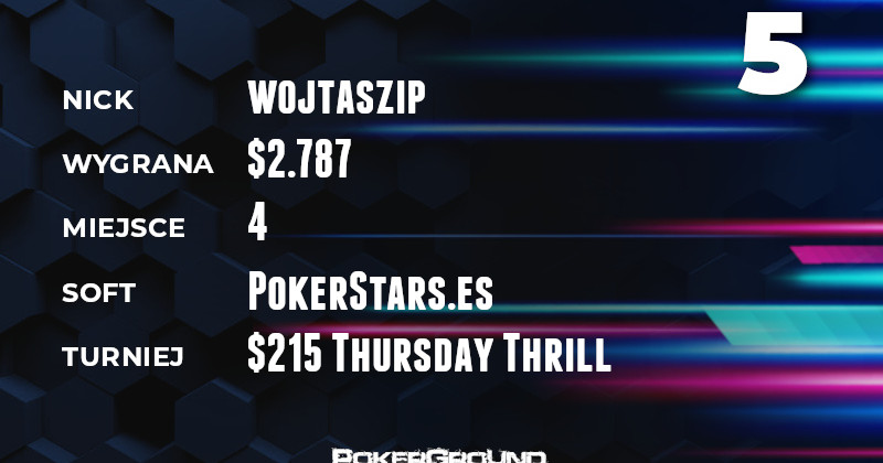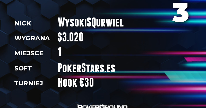 Najlepszy wynik z pozostałych platform pochodzi dzisiaj z rozgrywki Hook €30. Tam nie miał sobie równych gracz o nicku WysokiSQrwiel. Jego bankroll zasiliła kwota wynosząca $3.020.