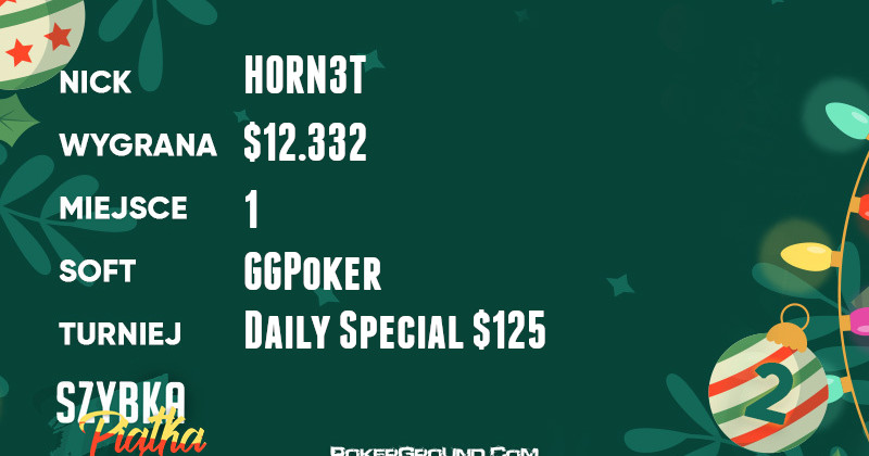 W ostatnim czasie na GGPoker regularnie powiększa się również portfel gracza o nicku HORN3T. Tym razem dopisał do konta $12.332, a to za sprawą zwycięstwa w turnieju Daily Special $125.