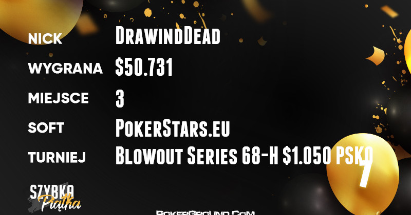 Nie gaśnie gwiazda gracza DrawindDead, który rozbłysła w Nowym Roku niczym supernova. Polak czuje się w eventach festiwalu Blowout Series jak ryba w wodzie, co potwierdził notując kolejny świetny wynik. Trzecie miejsce w rozgrywce Blowout Series 68-H $1.050 PSKO pozwoliło na zarobek w kwocie $50.731.