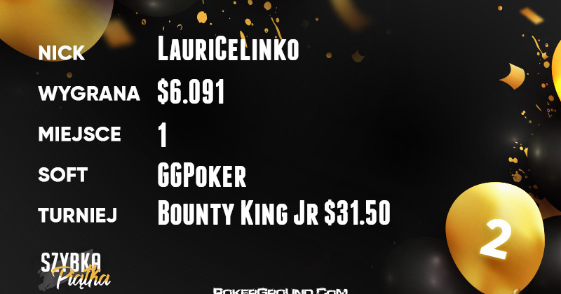 Biało-czerwoni wykazali się również aktywnością na platformie GGPoker, gdzie odnieśli kilka cennych zwycięstw. Najwyżej opłacone należy do LauriCelinko, który nie dał rywalom szans w turnieju Bounty King Jr $31.50. Dzięki temu jego portfel powiększył się o $6.091.