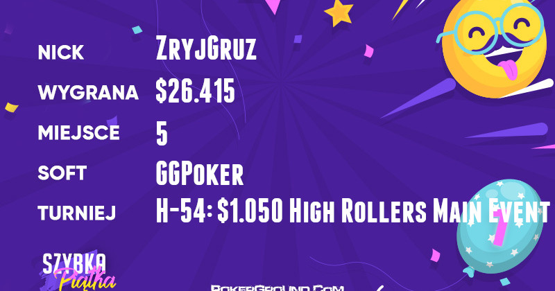 Z dzisiejszej rozległej grupy wyróżnił się ZryjGruz, który dwa dni zmagań w evencie H-54: $1,050 High Rollers Main Event zakończył ostatecznie na miejscu piątym. W efekcie, jego konto powiększyło się o $26.415.