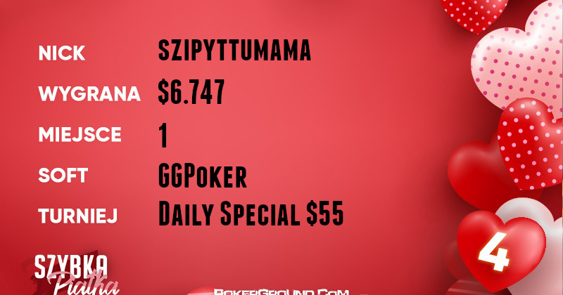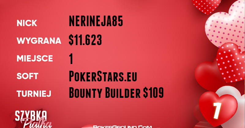 Wynik dnia to dzieło autorstwa gracza o nicku NERINEJA85. Rozegrał on doskonałe zawody w turnieju Bounty Builder $109, gdzie nie pozwolił przeciwnikom na wiele. Dzięki temu mógł cieszyć się z wygranej oraz wypłaty w kwocie $11.623.