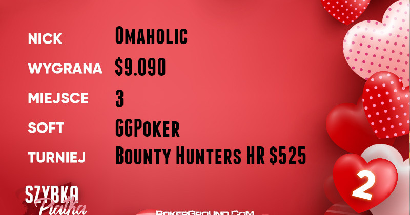 Choć stolikowa ksywa może tego nie zdradzać, to Omaholic doskonale poczyna sobie również z dwiema kartami na ręce. Wczoraj wykręcił najlepszy wynik na GGPoker, zajął bowiem trzecie miejsce Bounty Hunters HR $525 i zgarnął $9.090.