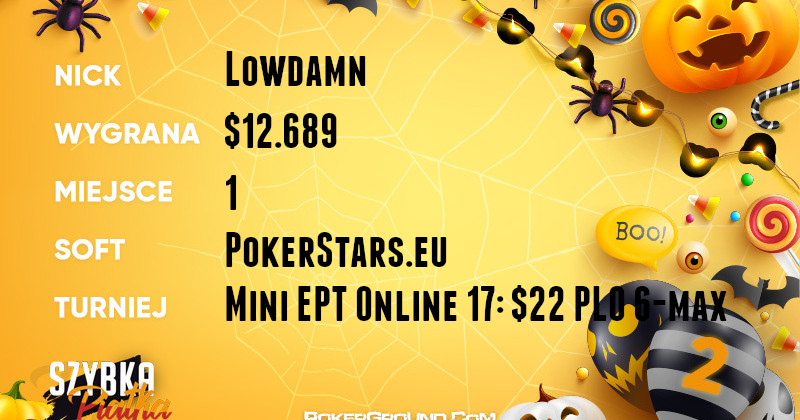 Z punktu widzenia prestiżu, to na wyróżnienie zasługuje z pewnością wicelider rankingu Lowdamn. Pokonał on liczną stawkę w evencie Mini EPT Online 17: $22 PLO 6-max, dzięki czemu dopisał do bankrolla $12.689.