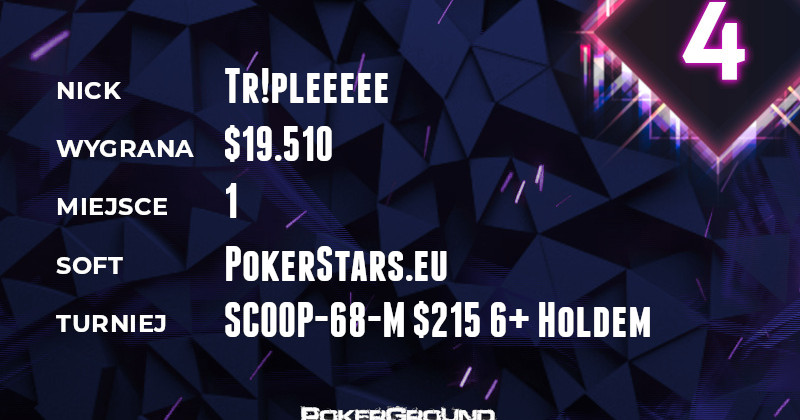 Co się nie udało starszym kolegom po fachu, tego dokonał niezrównany Tr!pleeeee. Po tytuł SCOOP sięgnął w evencie 68-M $215 6+Holdem 6-max. Do kasy udał się po wypłatę wynoszącą $19.510.