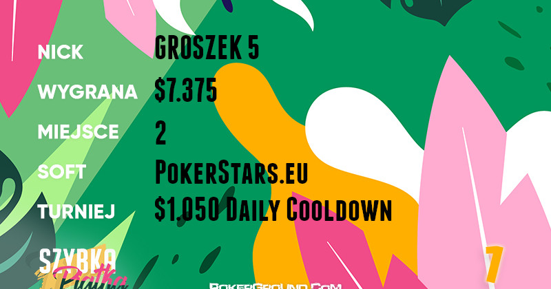 Jako lider niniejszego zestawienia objawił się GROSZEK 5. Rozegrał on bardzo dobre zawody w turnieju $1.050 Daily Cooldown, gdzie zabrakło bardzo niewiele do zwycięstwa. Ostatecznie za drugie miejsce zainkasował $7.375.