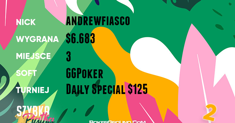 Biało-czerwoni wykazali się również aktywnością na platformie GGPoker. Tam z kolei najlepszym rezultatem może pochwalić się gracz o nicku andrewfiasco. Zameldował się on na najniższym stopniu podium w rozgrywce Daily Special $125, za co otrzymał $6.683.