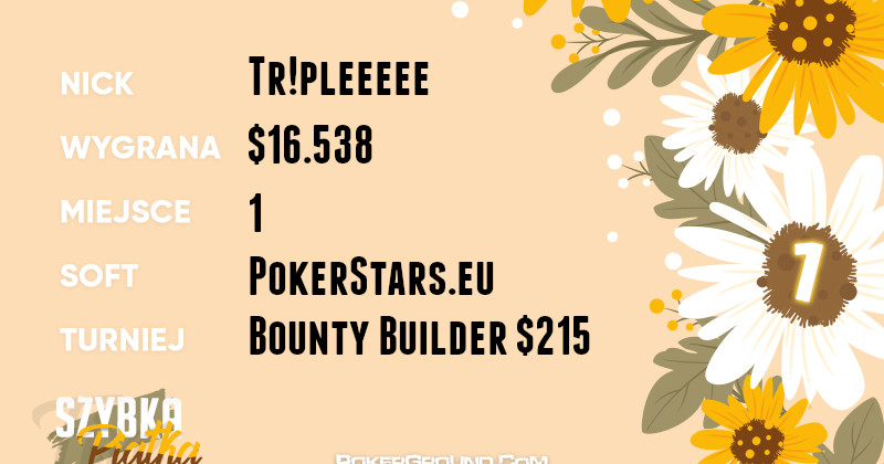 Z pewnością nikogo nie zdziwi fakt, iż na szczycie melduje się zwycięzca wczorajszego zestawienia – Tr!pleeeee. Gdy ten gracz jest na fali, wówczas niepodzielnie rządzi w naszych rankingach. Wczoraj nie dał szans rywalom w rozgrywce $215 Bounty Builder, inkasując $16.538.