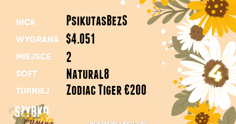 O pięć cyfr otarł się wicelider dzisiejszego wydania chorazy. Dzielnie spisywał się w turnieju $530 Daily Supersonic, ostatecznie kończąc swój udział na miejscu czwartym. Do kasy udał się po wypłatę w wysokości $9.508.