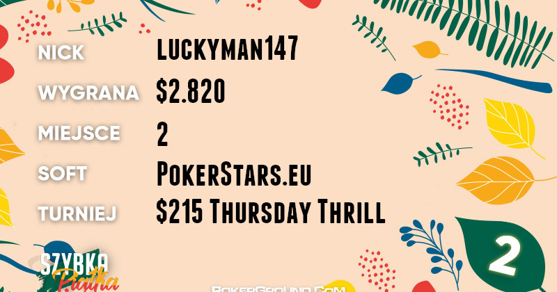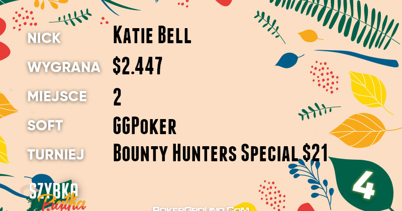 Z kolei najlepszy wynikiem na platformie GGPoker może pochwalić się Crag Hack. Nasz reprezentant zameldował się jako runner-up w turnieju Bounty Hunters Special $105. Do portfela Polaka wpłynęło $2.507.
