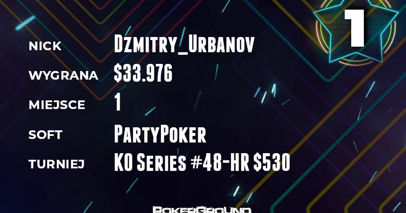 Zacznę tradycyjnie od lidera zestawienia, którym jest nie kto inny jak Dzmitry_Urbanov. Popularny „Dima” punktuje ostatnio ze skutecznością dobrze naoliwionej maszyny. Wczoraj nie miał sobie równych w evencie KO Series o numerze #48-HR $530, za co zgarnął $33.976.