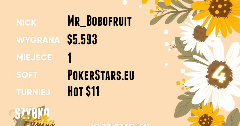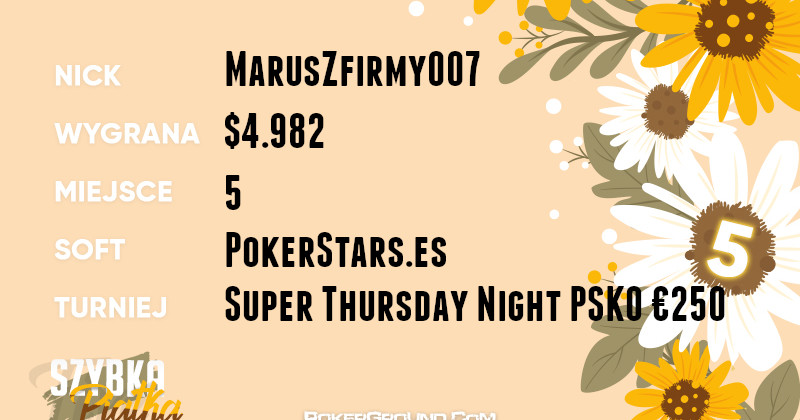 Najlepszy rezultat dzisiejszego dnia pochodzi z platformy PartyPoker, gdzie aktualnie trwa festiwal Powerfest. W evencie #44-H: $320 6-max PKO na finałowym stole zameldował się klawizna. Ostatecznie, zakończył zmagania na szóstym miejscu a jego bankroll wzbogacił się o $8.869.
