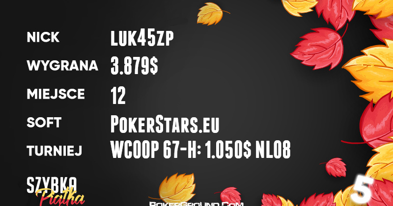 Po ciężkim piątku nadeszła sobota, a wraz z nią skończyła się niemoc Polaków przy pokerowych stołach. Wczoraj nasi gracze wrócili do swojej normalnej dyspozycji, dzięki czemu w Szybkiej Piątce mamy Wam dziś do zaprezentowania kilka bardzo wartościowych rezultatów.