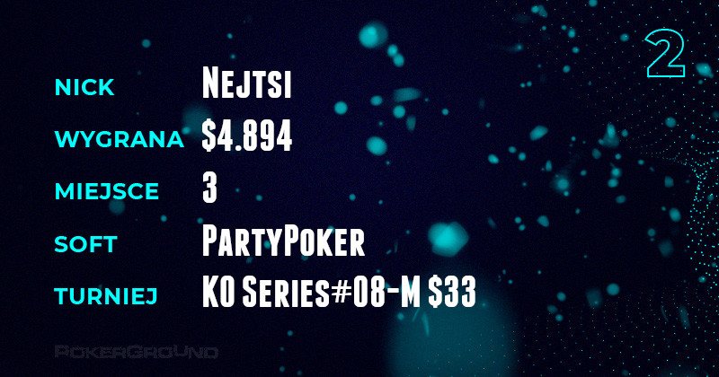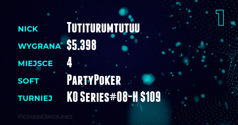 W niedzielę rozpoczął się festiwal KO Series na PartyPoker i pierwsze efekty widać w dzisiejszym zestawieniu. Tutiturumtutuu (uff co za ciężki nick!) oraz Nejtsi zajęli bardzo przyzwoite miejsca w evencie #8 High oraz Medium, a w konsekwencji okupują szczyt rankingu.