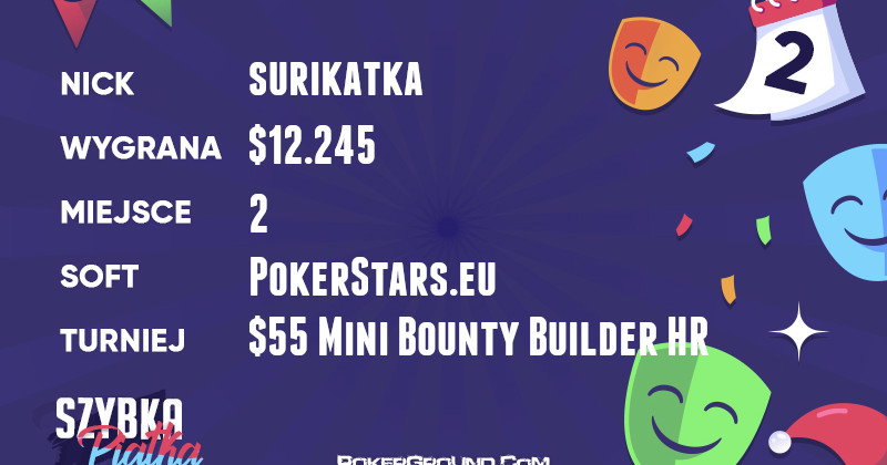 Zadowolony z siebie powinien być również surikatka. Świetna postawa w rozgrywce $55 Bounty Builder HR zaowocowała drugim miejscem. Przyniosło mu to zarobek w wysokości $12.245.
