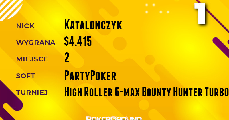 Na szczycie dzisiejszego zestawienia swoją flagę zatknął Katalonczyk. Stało się to, dzięki zajęciu drugiego miejsca w rozgrywce High Roller 6-max Bounty Hunter Turbo. Wypłata za ten wyczyn wyniosła $4.415.