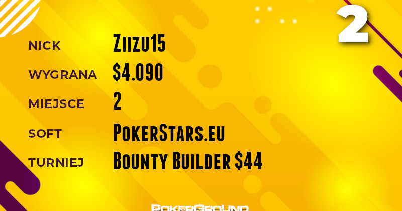 Powyżej czterech tysięcy dolarów zgarnął również wicelider rankingu. Ziizu15, bo o nim mowa, z lwią odwagą bił się w turnieju Bounty Builder $44. Ostatecznie ukończył zawody na miejscu drugim.