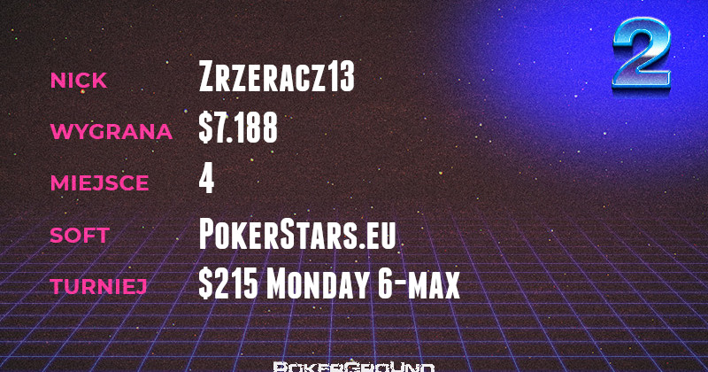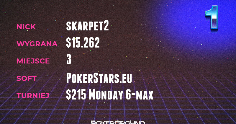 Nie do zatrzymania pozostaje skarpet2. Po zwycięstwie w Weekly Ships poczuł krew niczym Rambo i idąc za ciosem zameldował się na pierwszym miejscu dzisiejszego zestawienia. Stało się to dzięki korzystnemu dealowi, który zawarł z dwoma innymi graczami w turnieju $215 Monday 6-max.