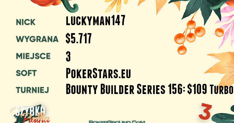 Aczkolwiek jak się nie ma co się lubi, to się lubi co się ma. A my lubimy wynik lidera. Wycioreks, bo o nim mowa, zameldował się jako drugi w rozgrywce $55 Mini Bounty Builder HR, dzięki czemu wzbogacił się o $8.162.
