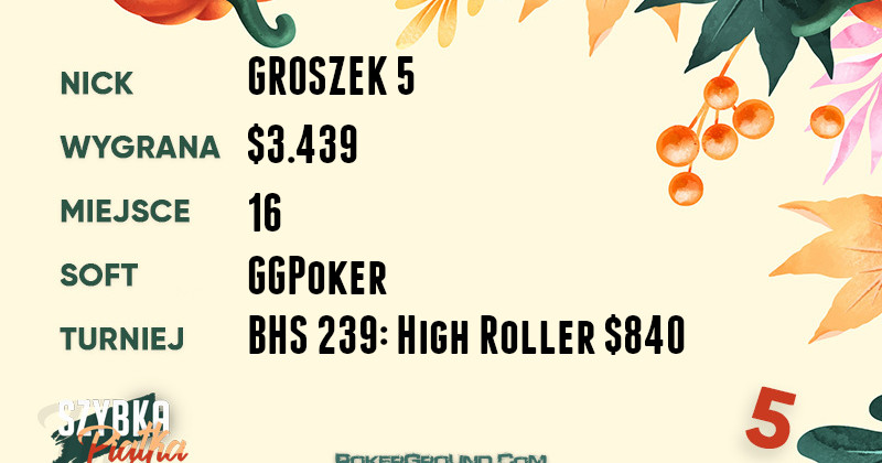 Z kolei po zwycięstwo i równie przyzwoitą wypłatę sięgnął wicelider rankingu BeleMezutsu. Nie dał on większych szans rywalom w turnieju BHS 247: Bounty King Mini Main Event $31.50, rozgrywanym na GGPoker. Za swój wyczyn zainkasował $7.067.