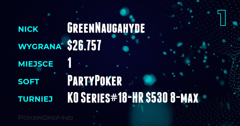 Absolutnym hegemonem dzisiejszego zestawienia został GreenNaugahyde, weteran naszych rankingów, aczkolwiek już jakiś czas w „Szybkiej Piątce” niewidziany.  Jak powrót, to z hukiem, Polak w evencie #18-HR $530 8-max zajął pierwsze miejsce i zainkasował $26.757.