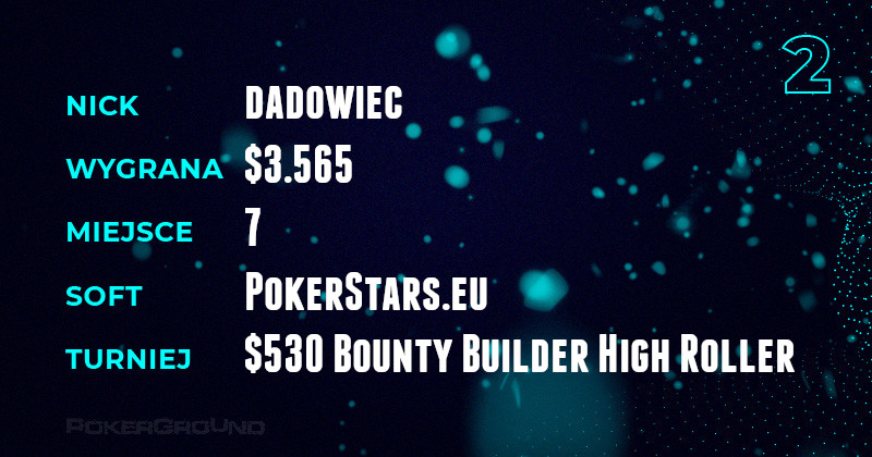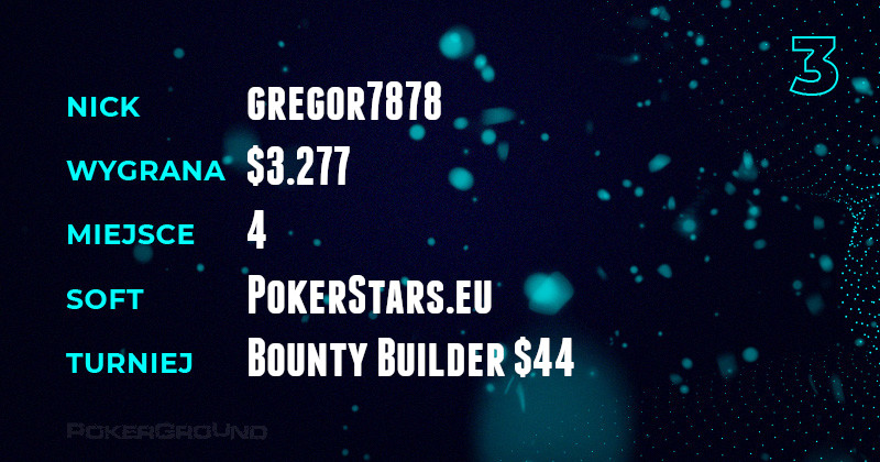Zwycięstwo w turnieju odniósł również zamykający dzisiejsze zestawienie H4jniAK. On z kolei nie miał sobie równych w we wczesnoporannej edycji Bounty Builder, o wpisowym $44. Bankroll naszego grindera powiększył się o $2.633.