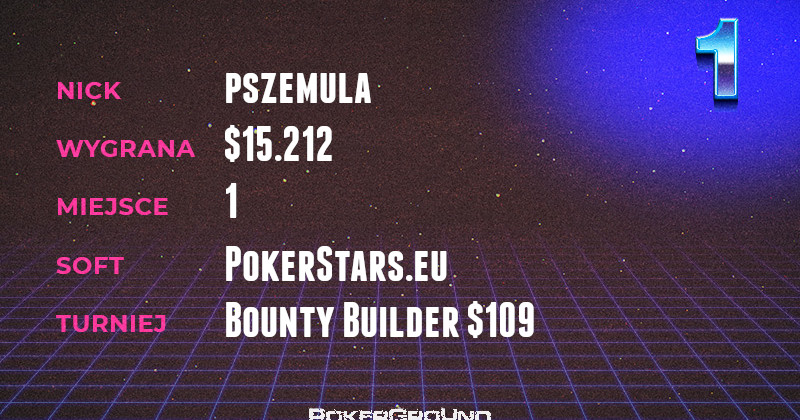 Dzisiejszym capo zestawienia został doskonale znanym czytelnikom pszemula. Nick nadany w okolicach drugiej klasy podstawowej jak widać jest wspaniałym talizmanem. Pszemula regularnie melduje się w naszych rankingach, a dzisiejszy wygrywa dzięki pobiciu konkurencji w turnieju Bounty Builder $109.