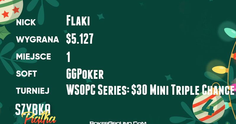 Jedynym z najlepszej piątki, który może legitymować się zwycięstwem, jest gracz o nicku Flaki. Nie dał on rywalom żadnych szans w turnieju WSOPC Series: $30 Mini Triple Chance. W przypadku tego eventu, nagroda za pierwsze miejsce wyniosła $5.127.