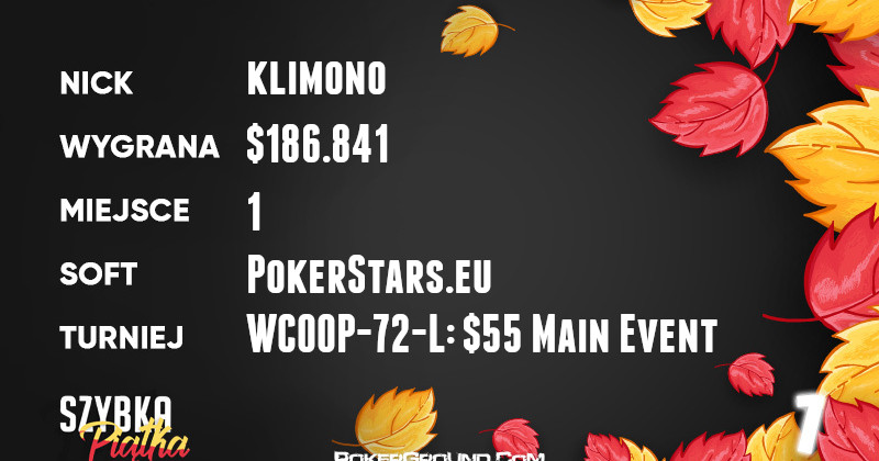 Cztery dni bił się klimono w turnieju WCOOP-72-L: $55 Main Event. Na finałowym stole postanowił podkręcić tempo i rozbił rywali w pył w nieco ponad godzinę! Za swój wyczyn zainkasował $186.841.
