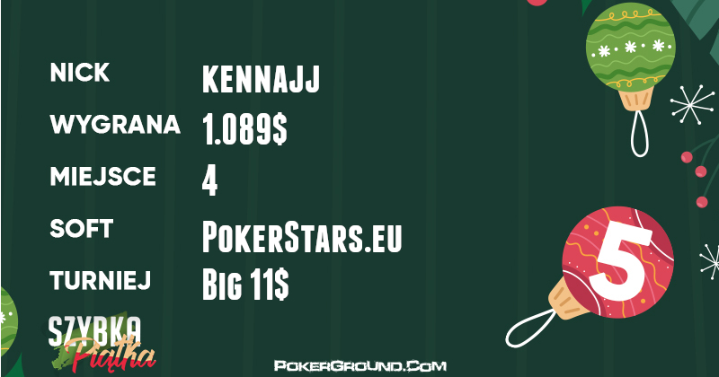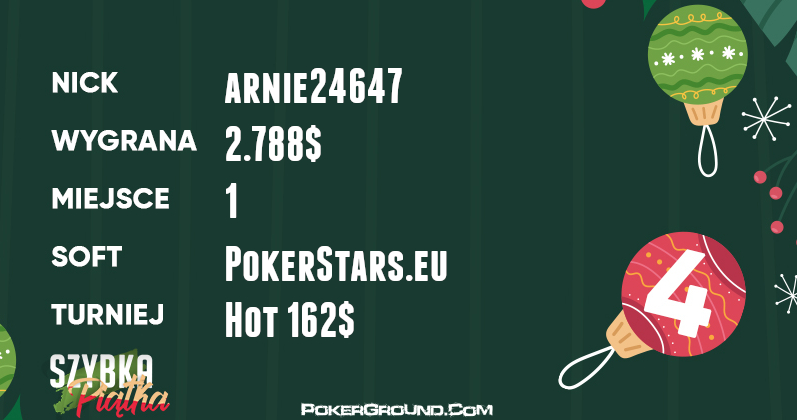 Po skończonej robocie przy ubieraniu choinki i gonieniu karpia część z Was zasiadła wczoraj do pokerowych stołów. Jak się okazało, warto było jeszcze na moment opóźnić rozpoczęcie Świąt, bo wyniki, które osiągnęliście, wyglądają naprawdę imponująco… Zapraszamy na przedświąteczną Szybką Piątkę.