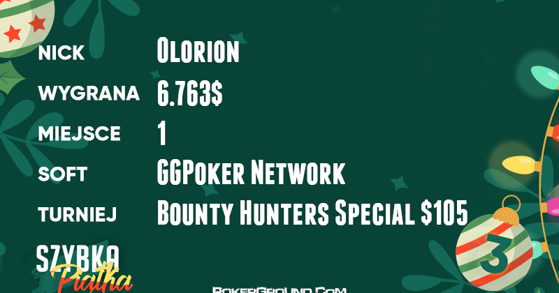 W wigilijny poranek mamy ostatnie przedświąteczne zestawienie najlepszych wyników, jakie nasi gracze osiągnęli ostatniego dnia w turniejach MTT online. Na czele zestawienia znajduje się Fatty_Bun44, który na PokerStars zajął 3. miejsce w turnieju 55$ Mini Bounty Builder. Za ten wyczyn Polak pod choinką znajdzie 7.811$.