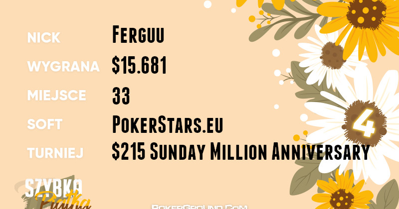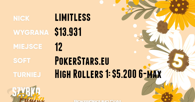 Za nami kolejny świetny dzień dla polskich grinderów on-line. Wśród szesnastu rezultatów powyżej tysiąca dolarów, znalazło się kilka dorodnych okazów, które walnie przyczyniły się do łącznego zarobku w wysokości $174.921.