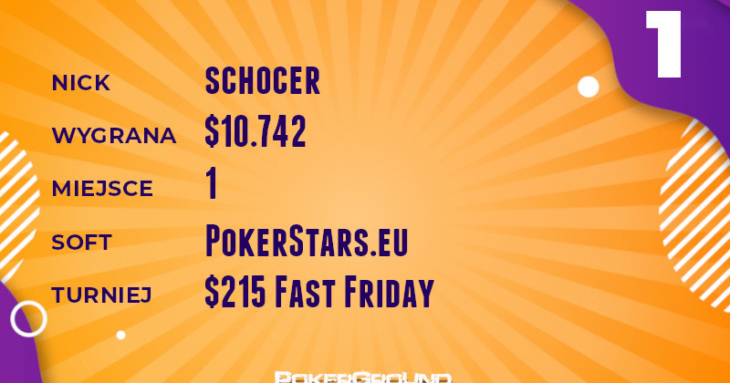 Niemalże połowę z tej wspólnej zdobyczy wyszarpał wczoraj weteran schocer. Nie dał on żadnych szans rywalom w turnieju $215 Fast Friday. W efekcie, do jego kieszeni powędrowało $10.742.