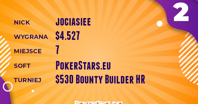 Jako drugi w dzisiejszym rankingu melduje się jociasiee. Nasz reprezentant, będący ostatnio częstym gościem zestawień, tym razem nieźle poczynał sobie w rozgrywce $530 Bounty Builder HR. Ostatecznie skończyło się na siódmym miejscu i wypłacie $4.572.