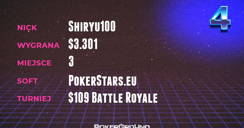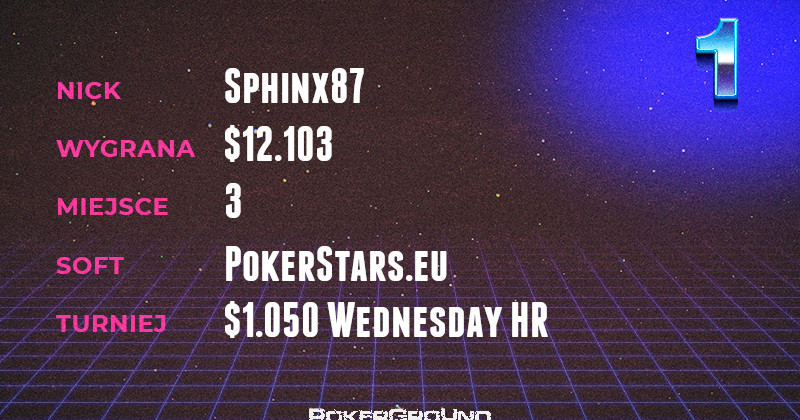 Znaczący udział, w tak okazale prezentującym się bilansie, miał rezultat osiągnięty przez jednego z weteranów naszych zestawień Sphinxa87. Stanął on na najniższym stopniu podium we flagowym turnieju środowym – $1.050 Wednesday HR. Za swój wyczyn otrzymał $12.103.
